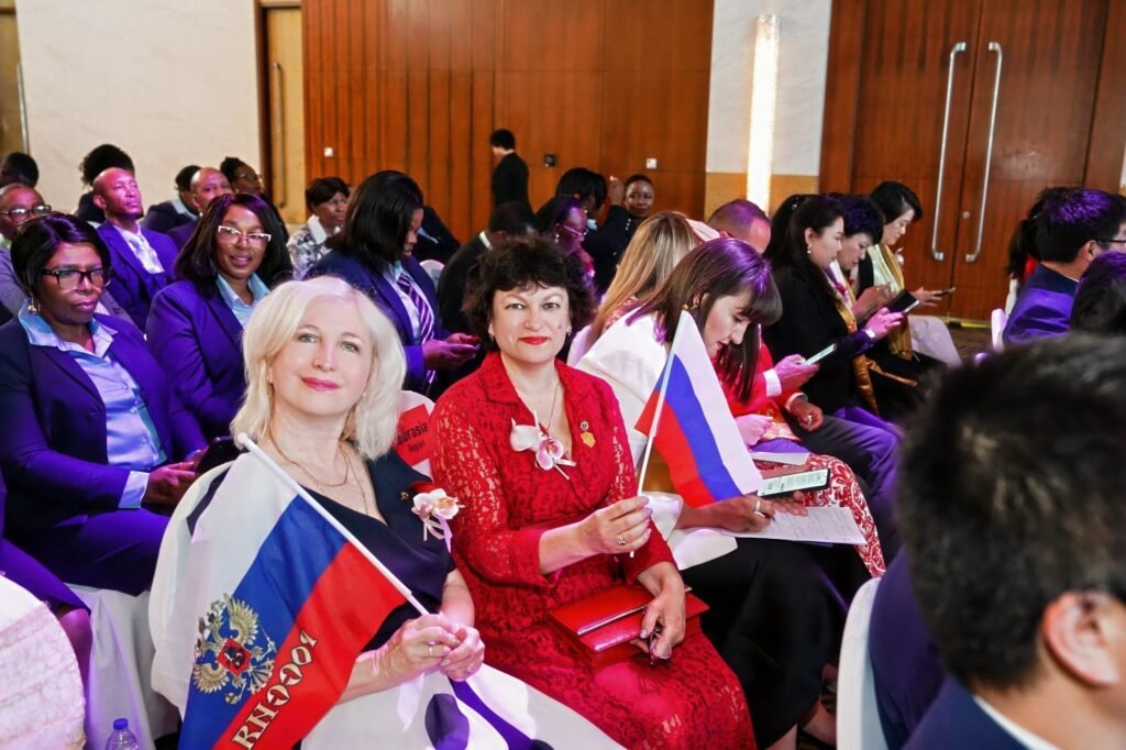 Following the enthusiastic introduction from the host, the senior leadership of Green World International Group entered in sequence, including Prof. Deming Li, President of Green World International Group; Mr. David L. Zhang, Vice President of Green World International Group and President of Green World Africa Region, Mr. Peter Li, Vice President of Green World International Group and President of Green World Latin America Region, Mr. Yanguo Chen, Vice President of Green World International Group and President of Green World Eurasia Region, Mr. Shaobo Liu, Deputy General Manager of Green World China Region, and Prof. Jason Zhang, Chief Scientist and Senior Consultant of Green World Agricultural Division.