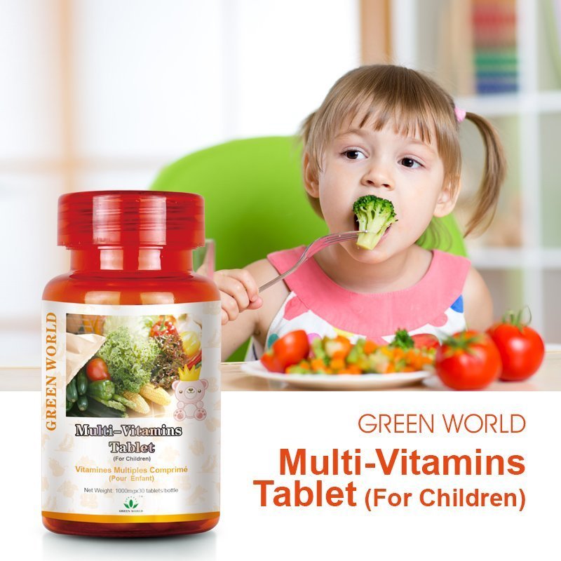 Vitamins play an important role in maintaining healthy growth of children. They can be used up or lost quickly therefore it is vital that your child intakes the essential vitamins daily. Optimal growth and development is critical during childhood and as a result vitamin requirement during this period is high compared to the volume of the food they eat. If a child has a poor appetite or erratic eating habits, or if he/she consumes a highly selective diet, it is common for the child to have vitamin deficiency. Green World Multi-Vitamins Tablet (For Children) provides your kids with vitamin A, vitamin B1, B2, B6, B12, vitamin C, vitamin D, vitamin E, folic acid, and niacin.